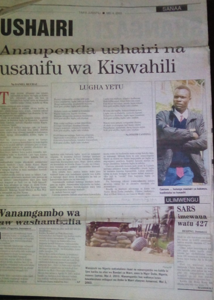 Jibu,Kitale Ni Mji upo katika kauti ya Transnzoia,tunakuza mahindi kwa wingi,Ni ghala la nafaka nchini Kenya, Cherangany Ni eneo bunge letu na Suwerwa Ni Kijiji jirani na Bwake na Makutano kwa ngozi.Hapo Ni kijijini kwetu upande wa pili Ni Kijiji Cha Bonde nyumbani kwao Mwenda zake Profesa Ken Walibora. Usanifu wangu wa kutema madini simulizi na andishi unatokana na hali ya kupenda kazi zake na kujifunza kutoka kwake hasa chachu ikiwa Ni mtu nimemjua hili lilinitia nguvu.Kuwa mwanahabari na mwandishi linajitokeza maana wanaonifahamu nilipenda kukichambua hiki kitabu.Ni kupitia uandishi wa mashahiri na makala ya kiswahili kwenye Taifa la leo/Jumapili nilichapishwa