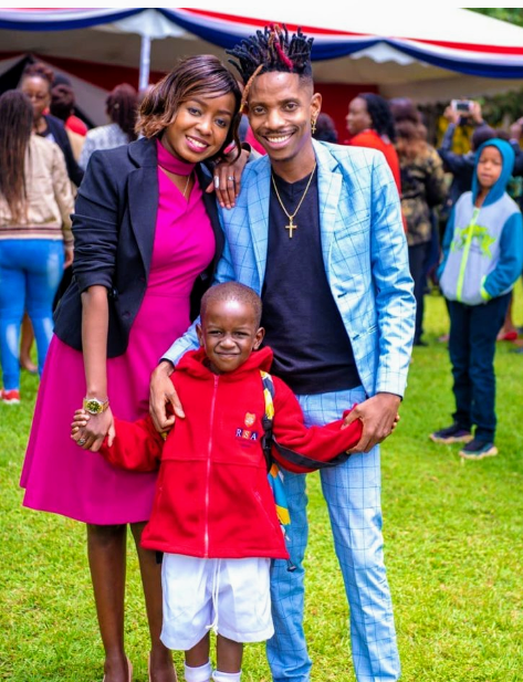 Eric Omondi with Jacque Maribe and their son.