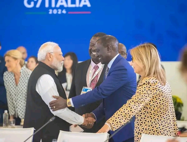 Viongozi hao walizungumza katika mkutano wa viongozi wa nchi 7 tajiri duniani uliofanyika Italia.Rais William Ruto amesema AU inajifanyia mabadiliko ili kujiweka kama wakala wa amani katika bara hilo na duniani. Picha / Ikulu Kenya.