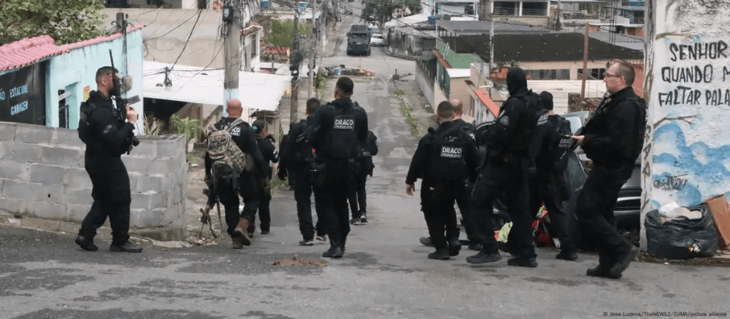Takriban maafisa 2,500 waliokuwa na silaha nzito, wakisaidiwa na magari ya kivita, helikopta na ndege zisizo na rubani walishiriki katika operesheni hiyo, iliyolilenga genge kuu la ulanguzi wa dawa za kulevya nchini Brazil katika vitongoji viwili maskini, kaskazini mwa Rio.